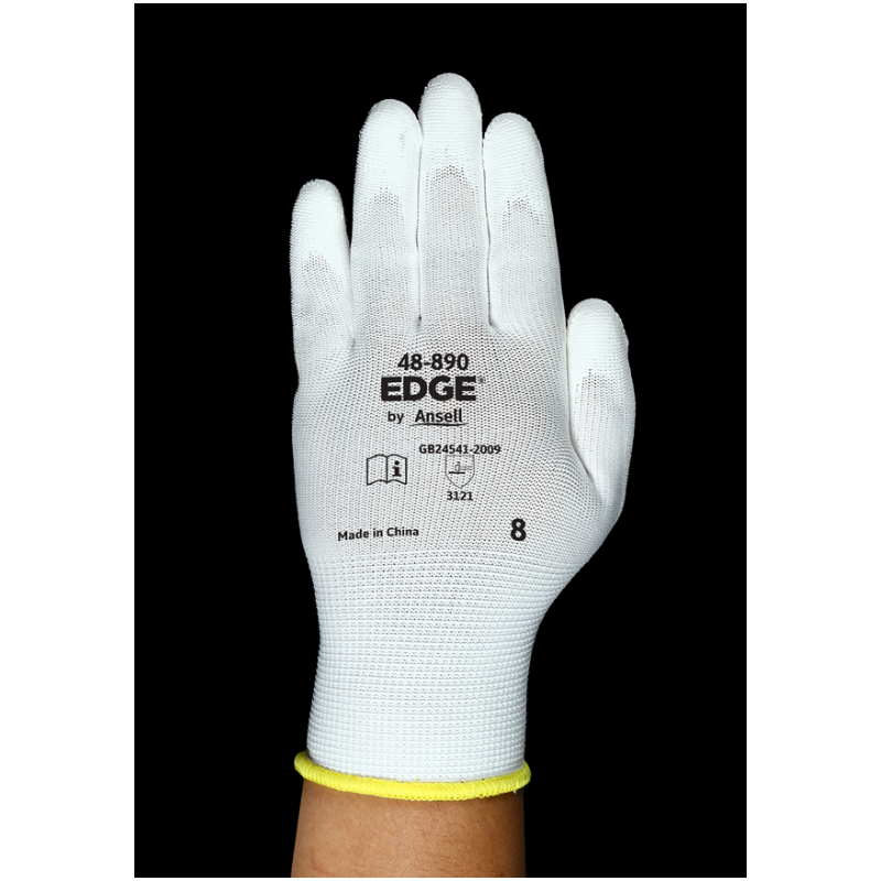 产品名称:Ansell/安思尔/ 48-890 白色 PU涂层 透气 舒适 防滑 耐磨 防护手套