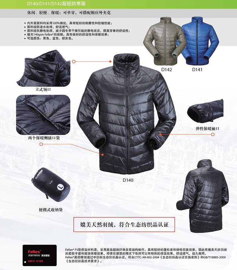内胆 858020 T300 300gsm新雪丽内胆 AC涂层防钻绒,颈部领口抓绒内衬,可适用于-25℃环境,较低可达-40℃,通过国标GB/T18398-2001防寒服暖体测试。 S-XXXL 5件/箱