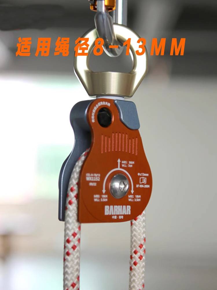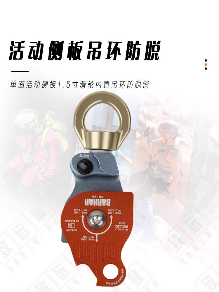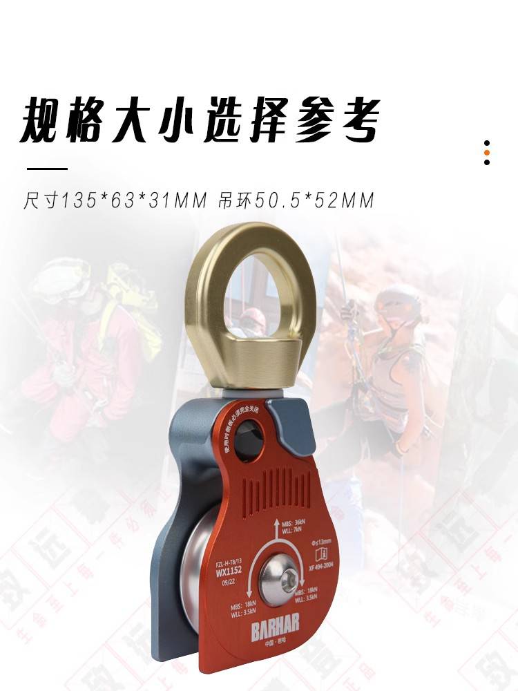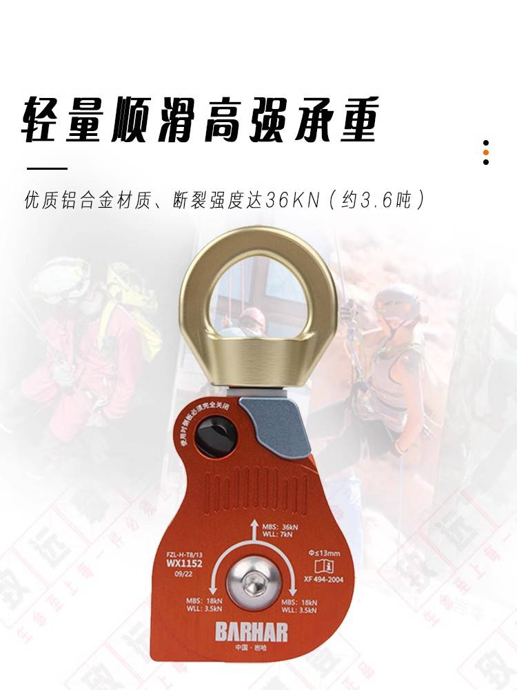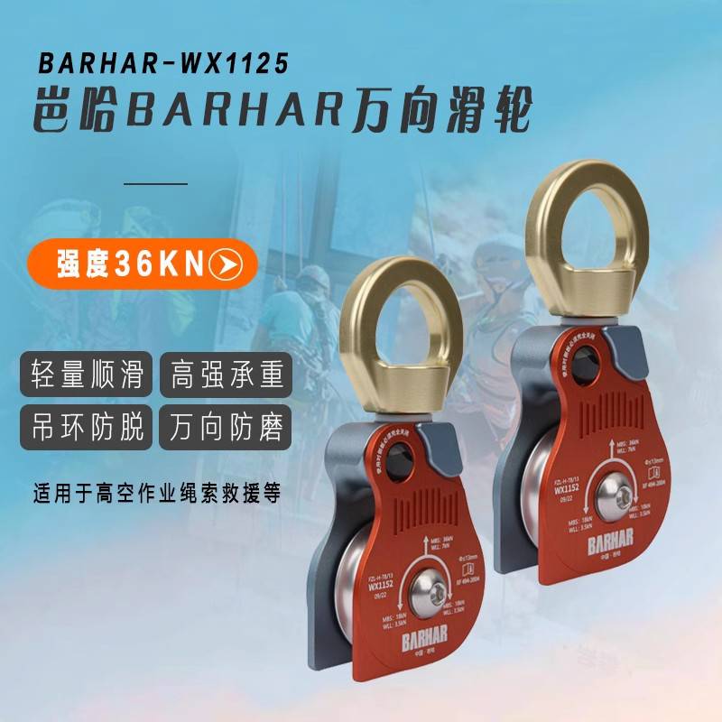 产品名称:岜哈 WX1152 双滑轮万向吊轮转环绳索救援高空作业万向单滑轮