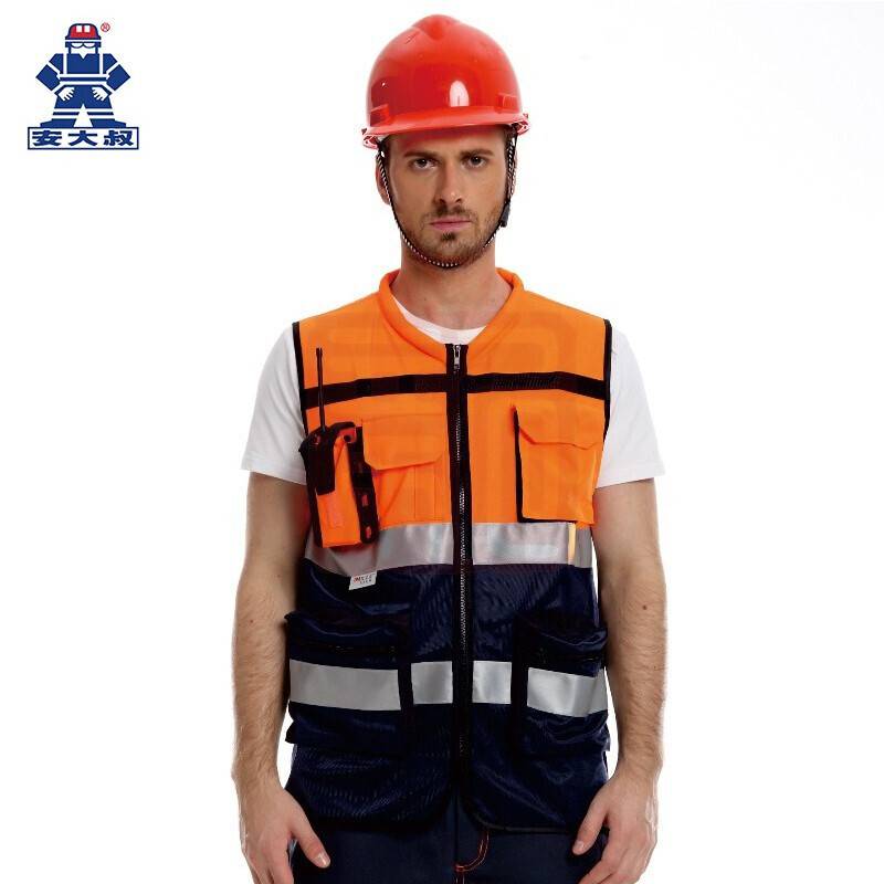 安大叔 A516Q 高警示多功能反光背心 荧光橙拼深蓝 M-XXXL