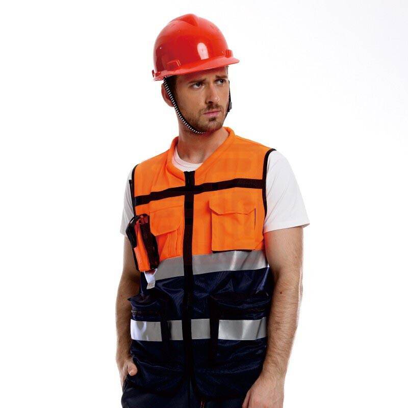 安大叔 A516Q 高警示多功能反光背心 荧光橙拼深蓝;